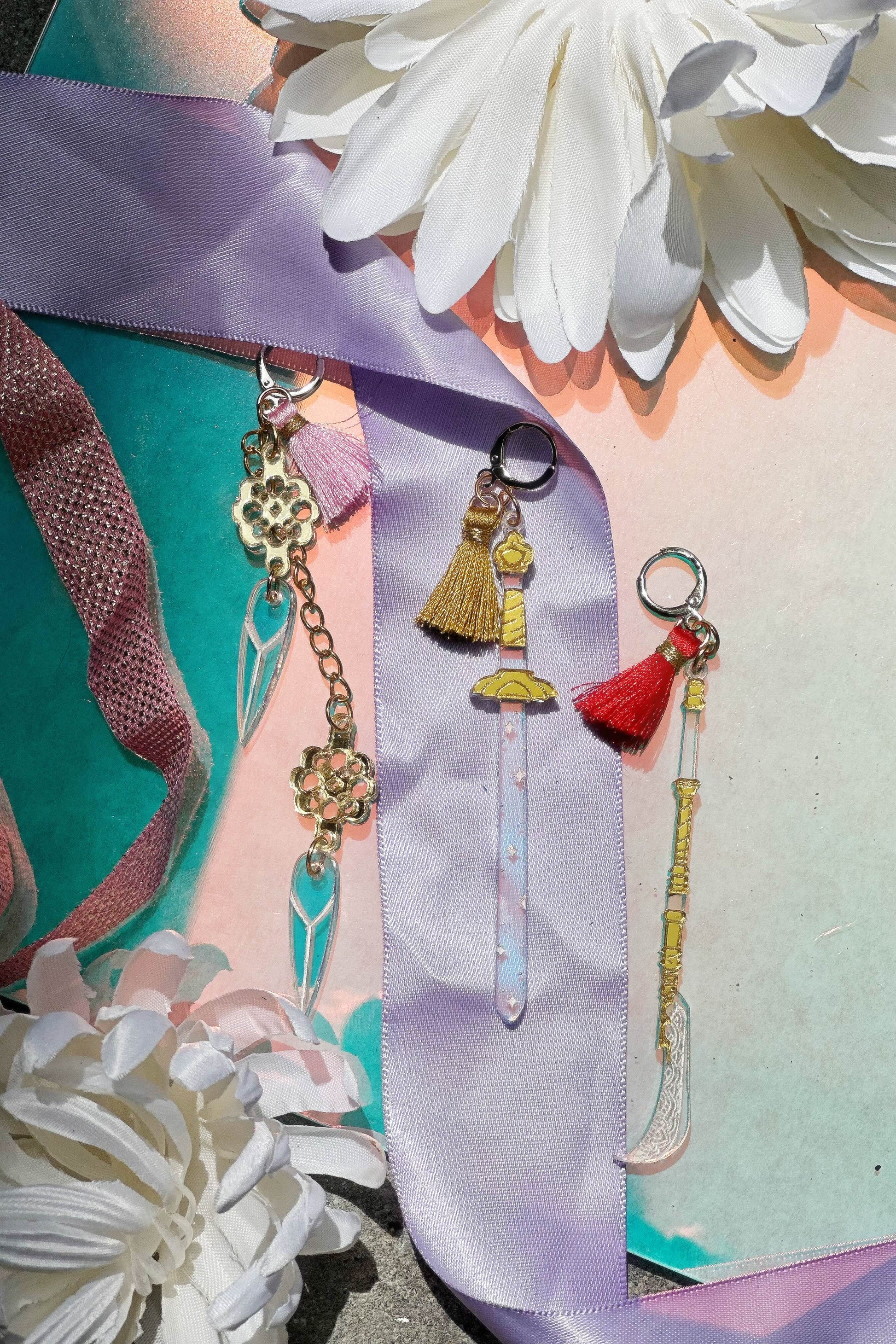This Kpop Demon Hunter inspired piece measure 3" tall and hangs off of hypoallergenic clicker hoops. **Clip Ons Available Upon Request**