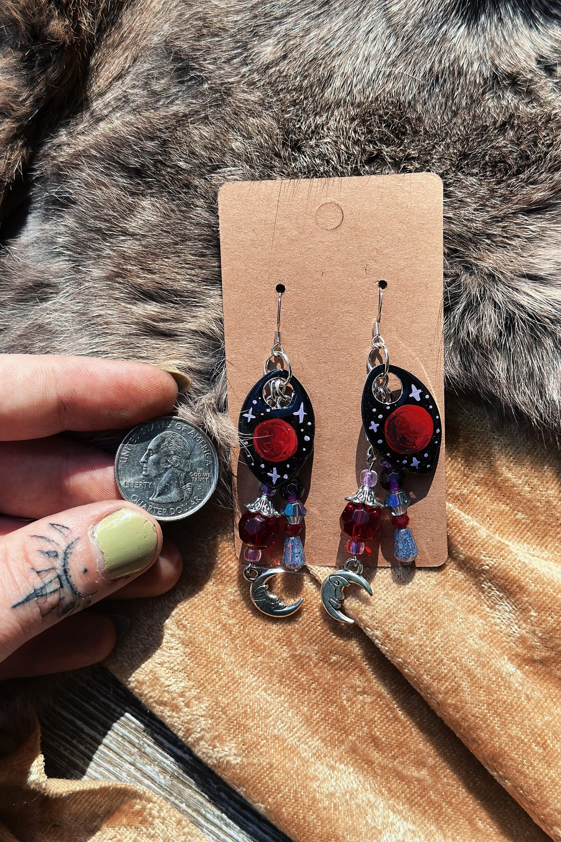 Each one of these earrings is hand painted by Wandering Rabbit arts on pieces of scale. Each character comes with a stunning selection of beads and trinkets.