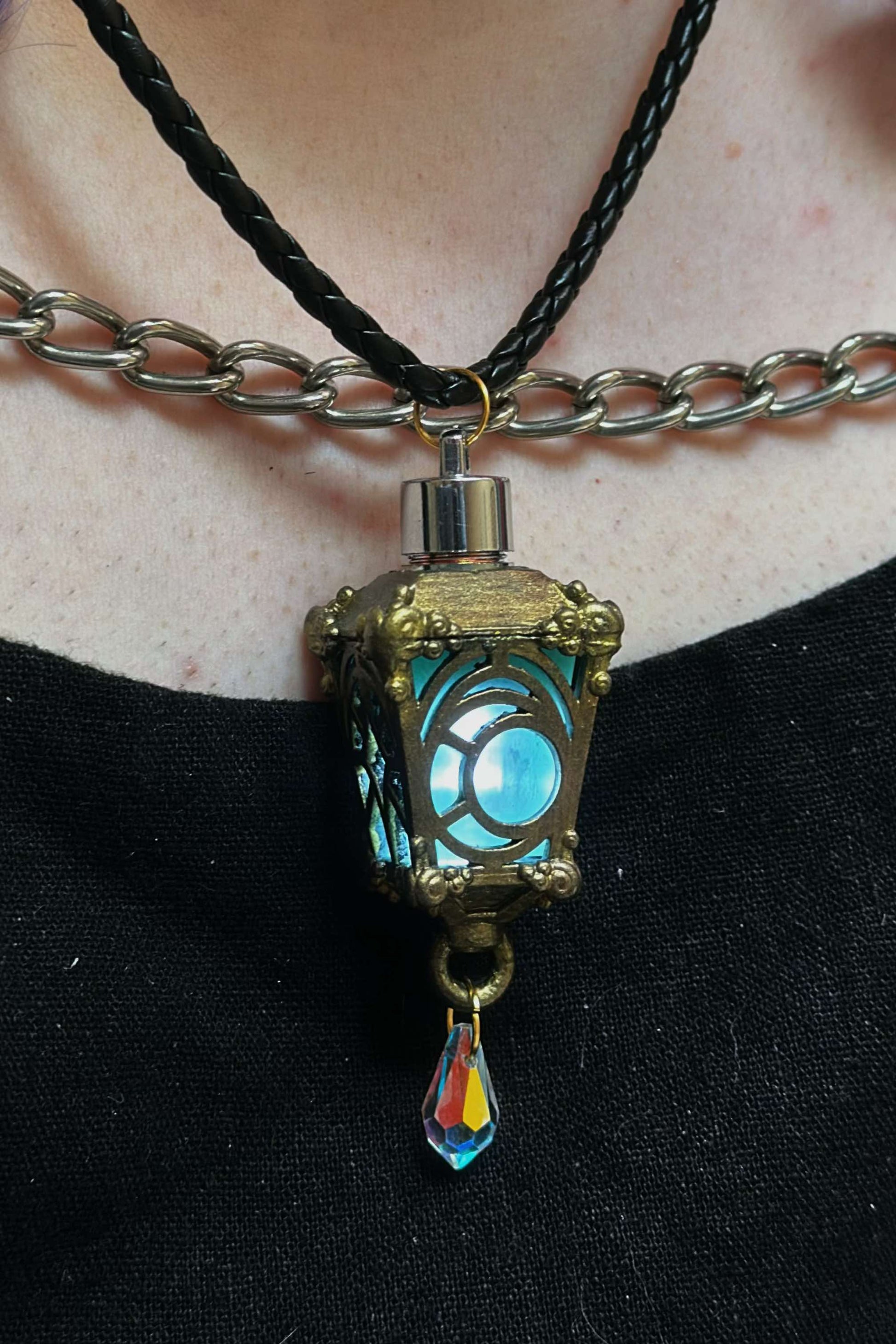 The Light of Selene shines for you. These stunning lantern pendants light up! Giving you a mote of moon beam to guide your way.