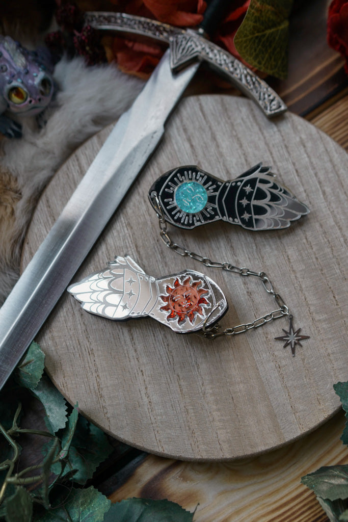 - The Cloak Clasp : The clips are attached to either side of a cloak, cardigan or vest, with the chain hanging between them. [These clips are for DECORATION only- please do not use them for structural purposes]