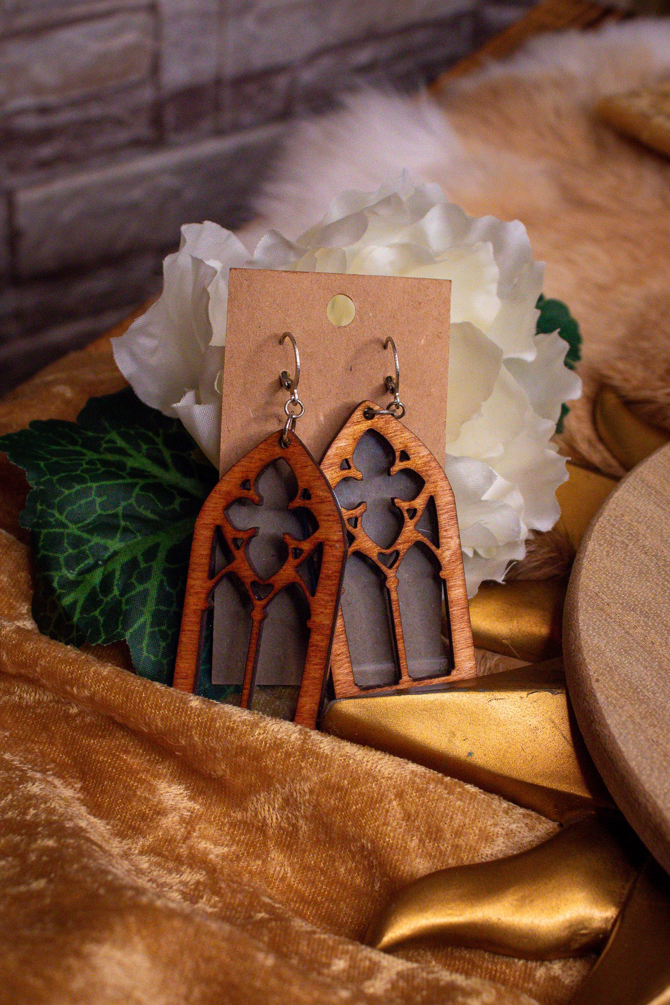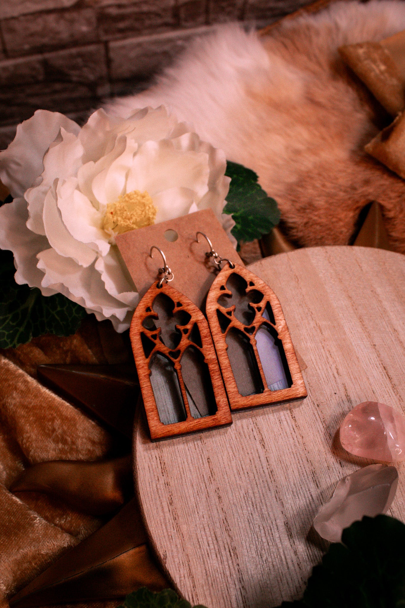 These wooden and acrylic earrings hang about 2.5". They are lightweight, made with nickel-free findings. Clip-on bases available upon request.