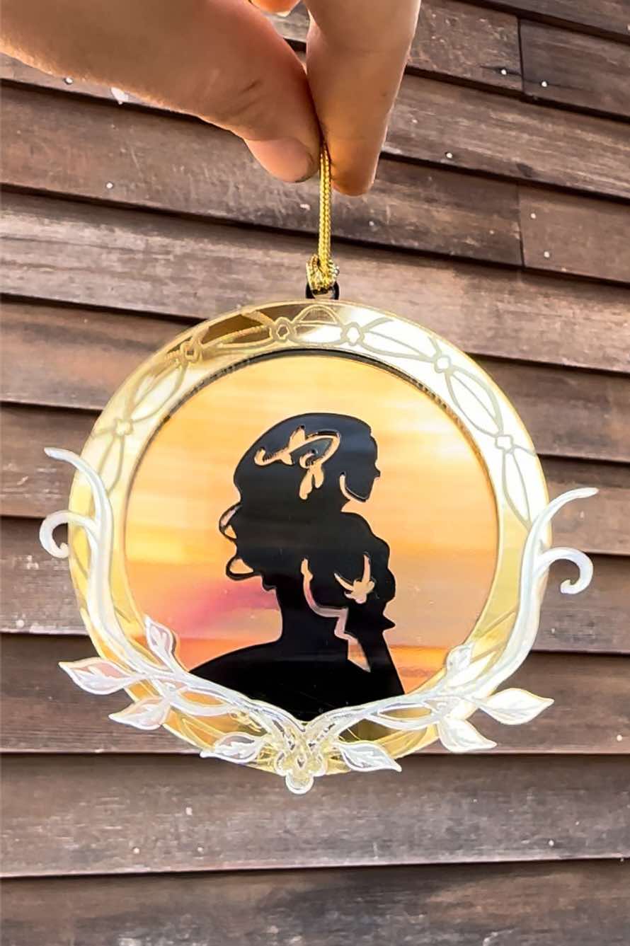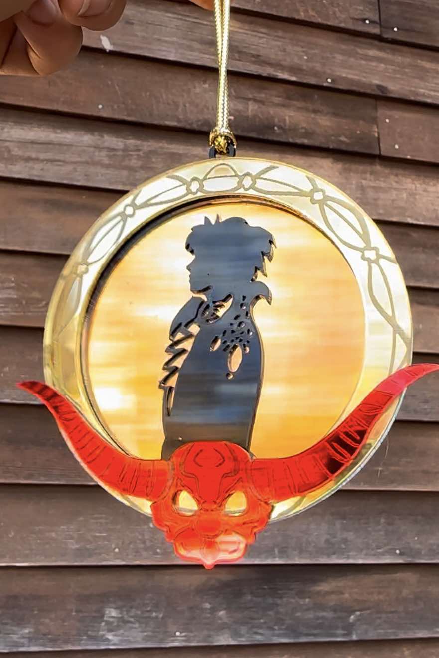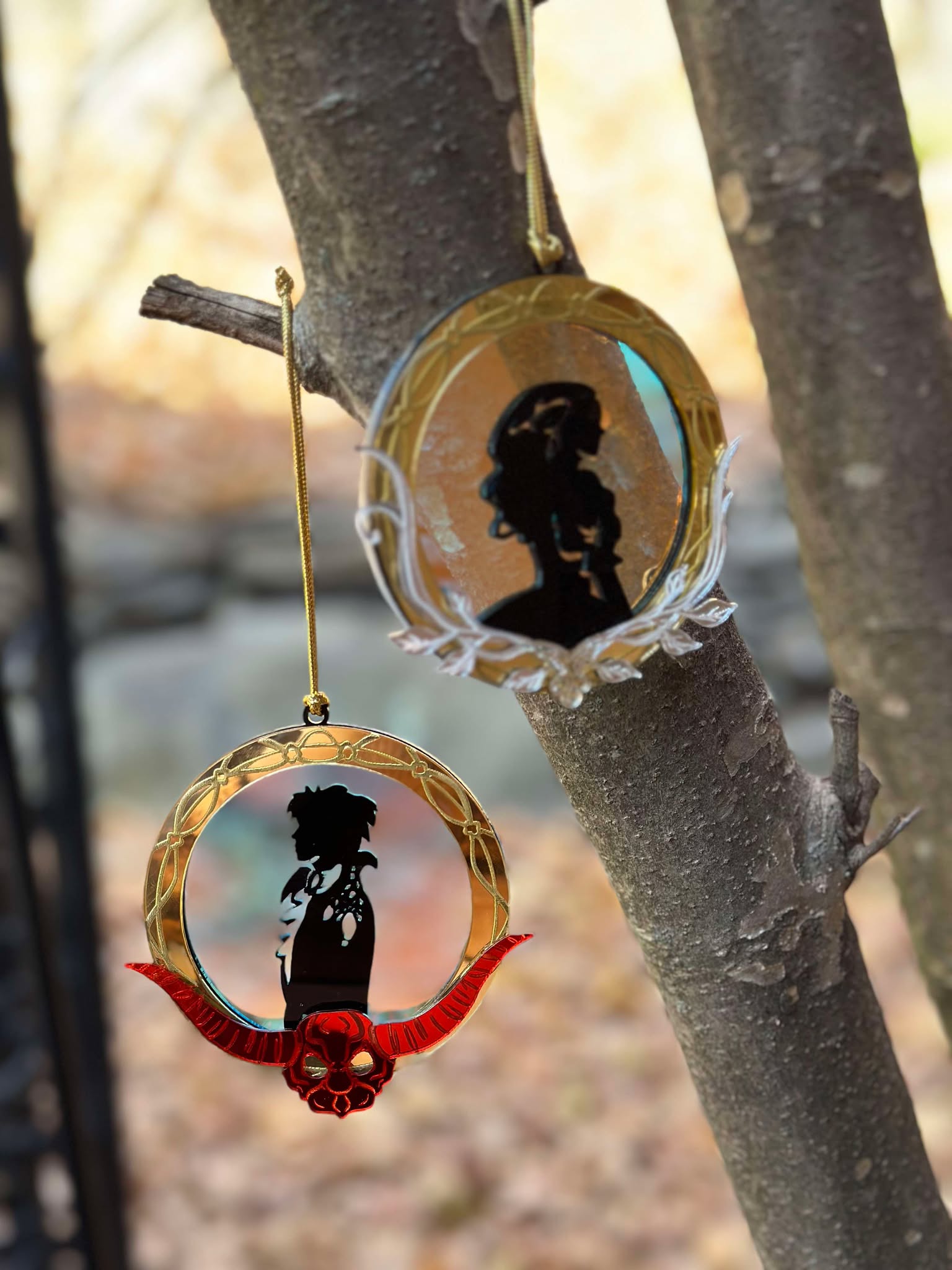 Each ornament is made with layers of shining acrylic and measures 3.5" each and come on a gold cord.