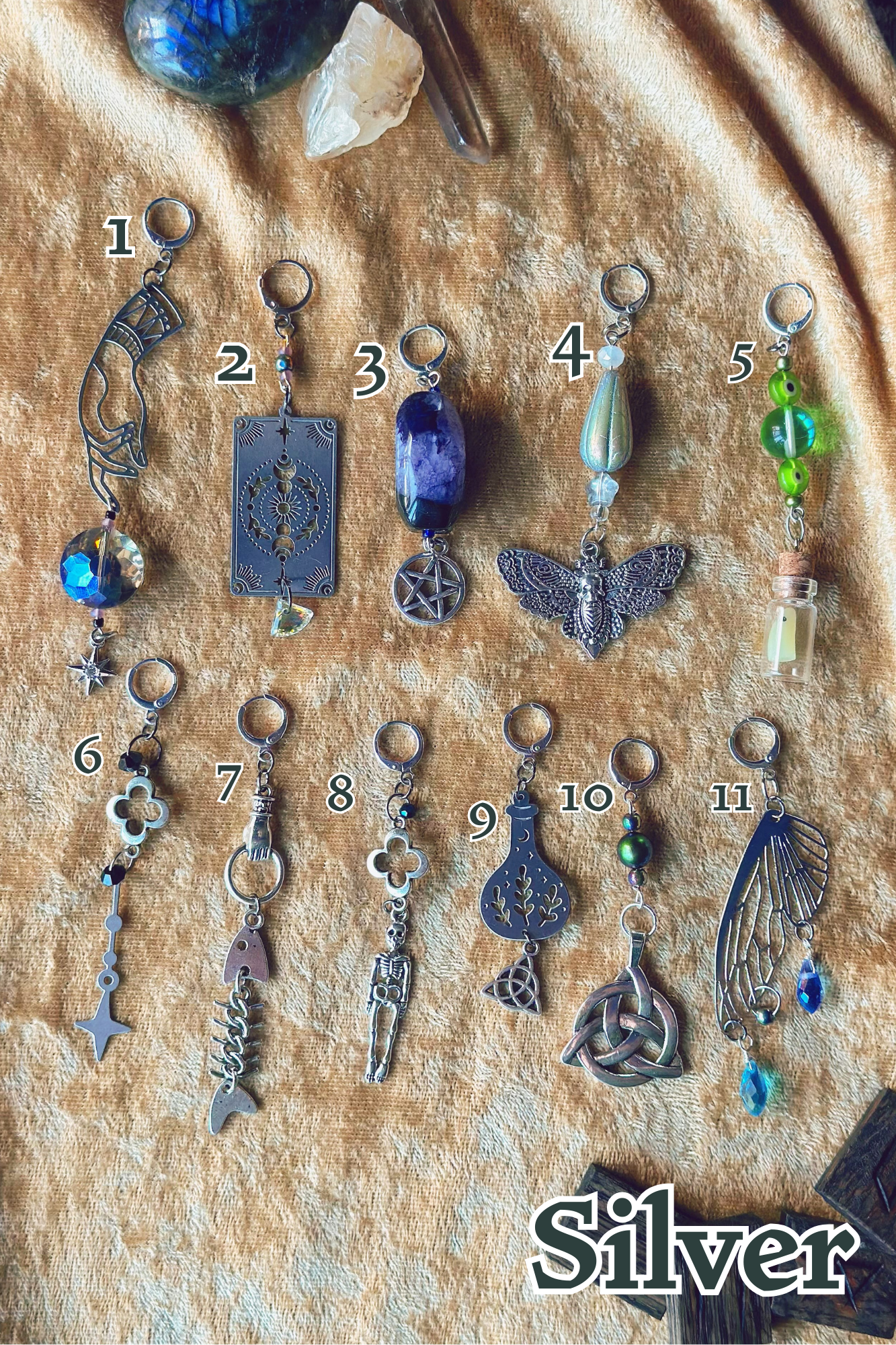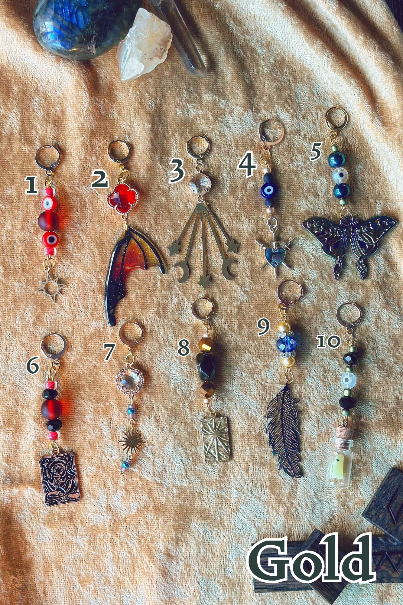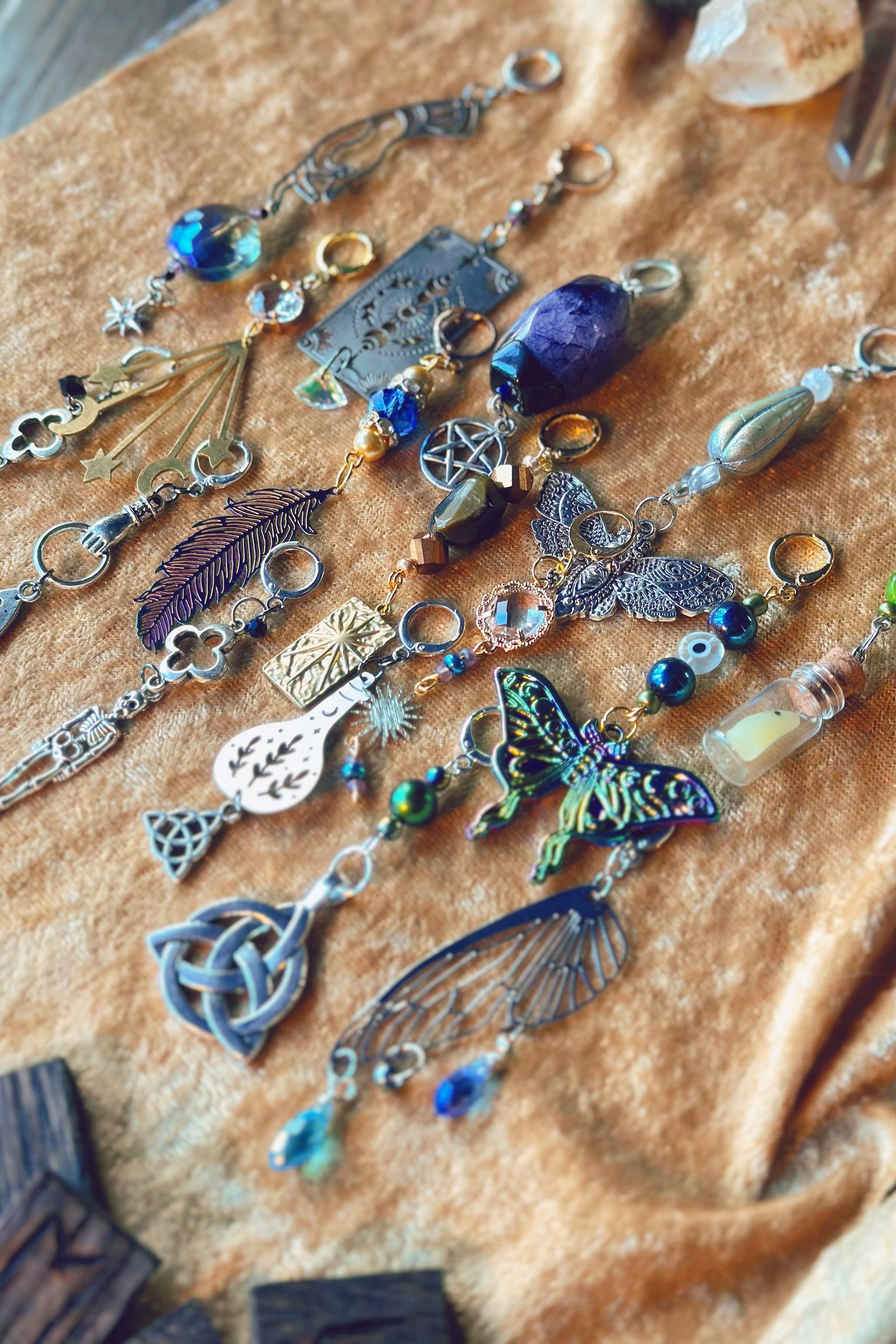 These one-of-a-kind clip-on charms are the perfect spot of whimsy to add to our Stained Halo Hats, glasses, necklaces, and more! Each charm measures between 2" - 3" long and comes on a hoop clip for easy attaching. All components are lightweight for comfort.