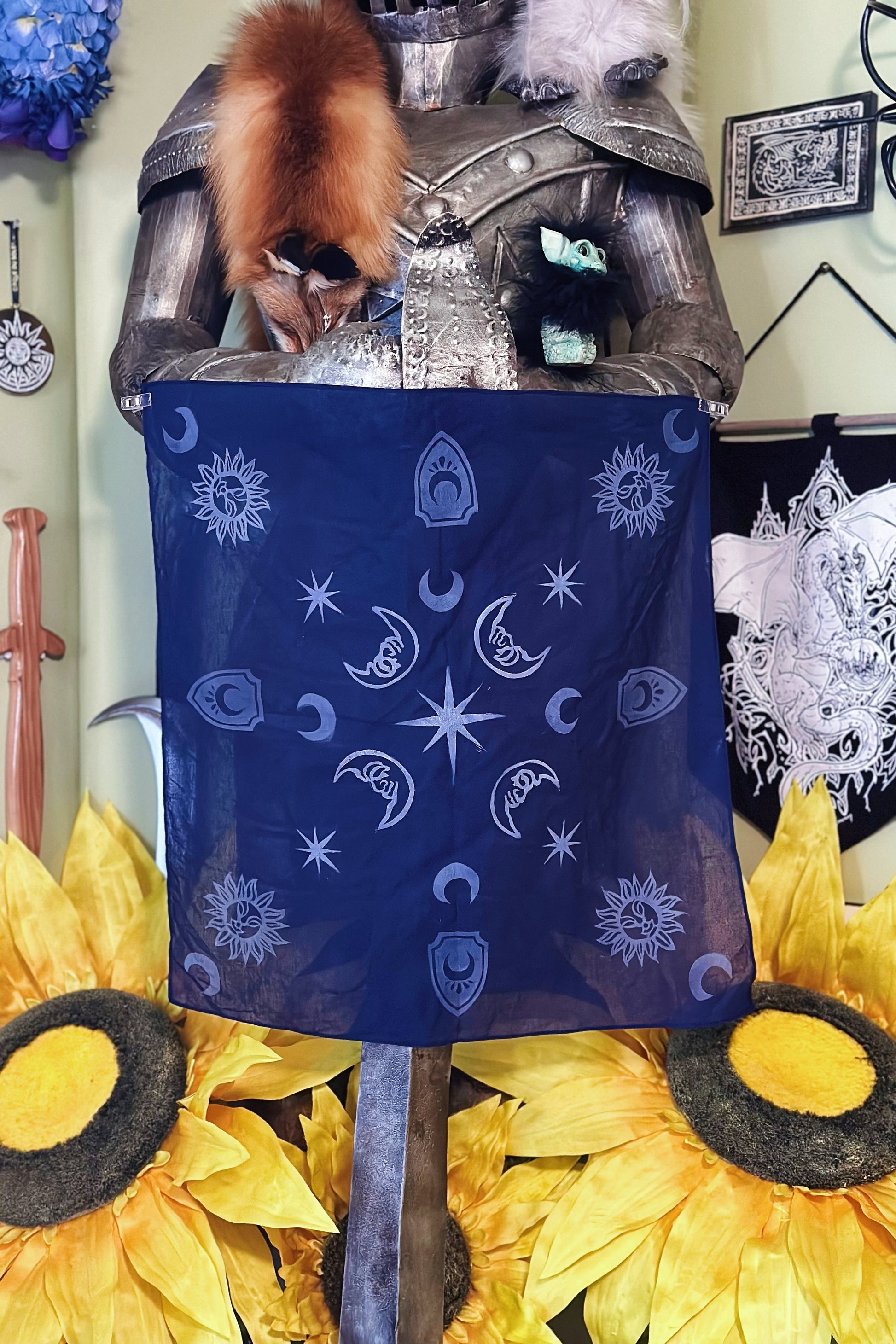The bandanas are perfect to wear, use as an alter cloth, or simply hang on your wall as a tapestry