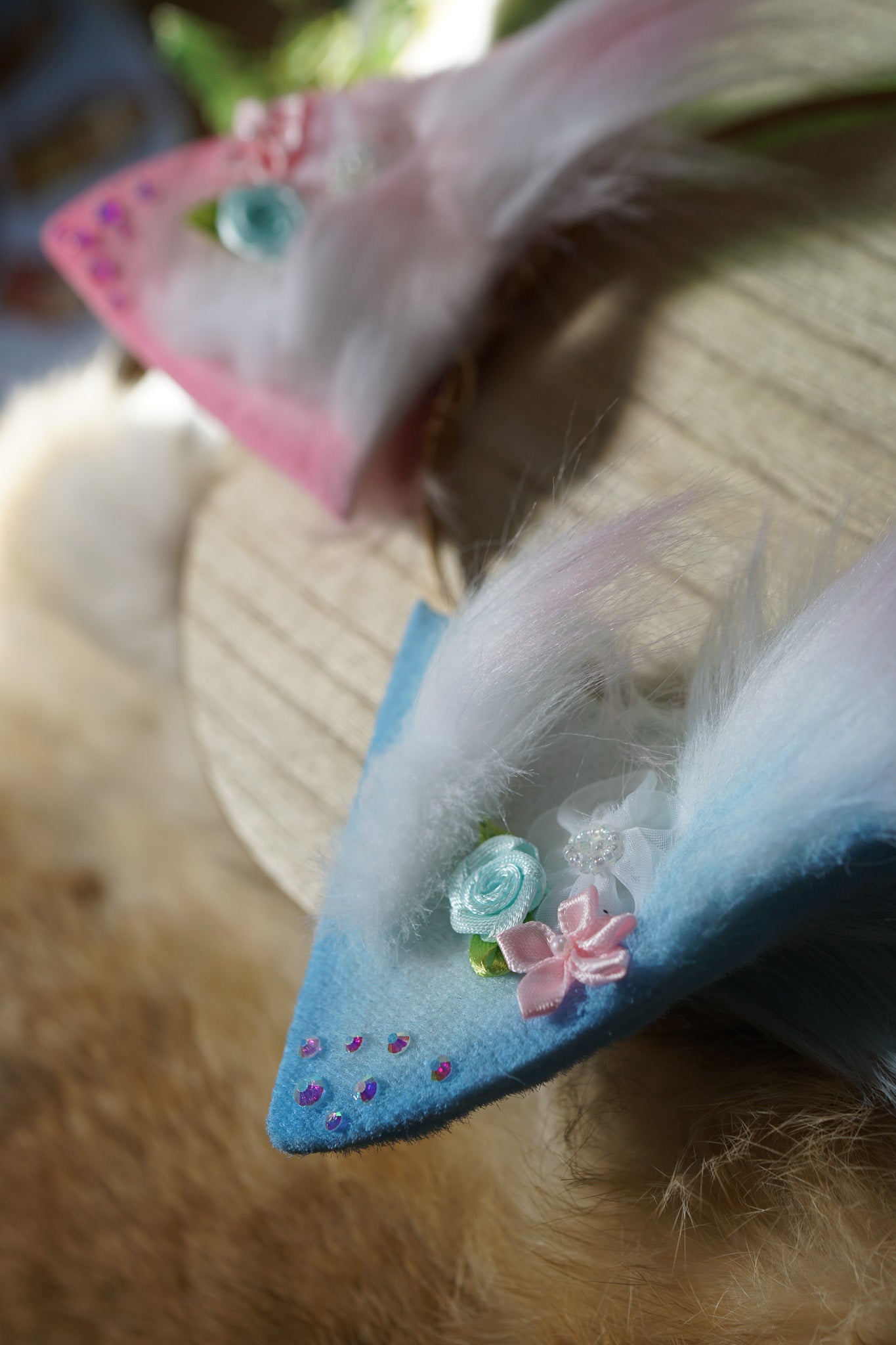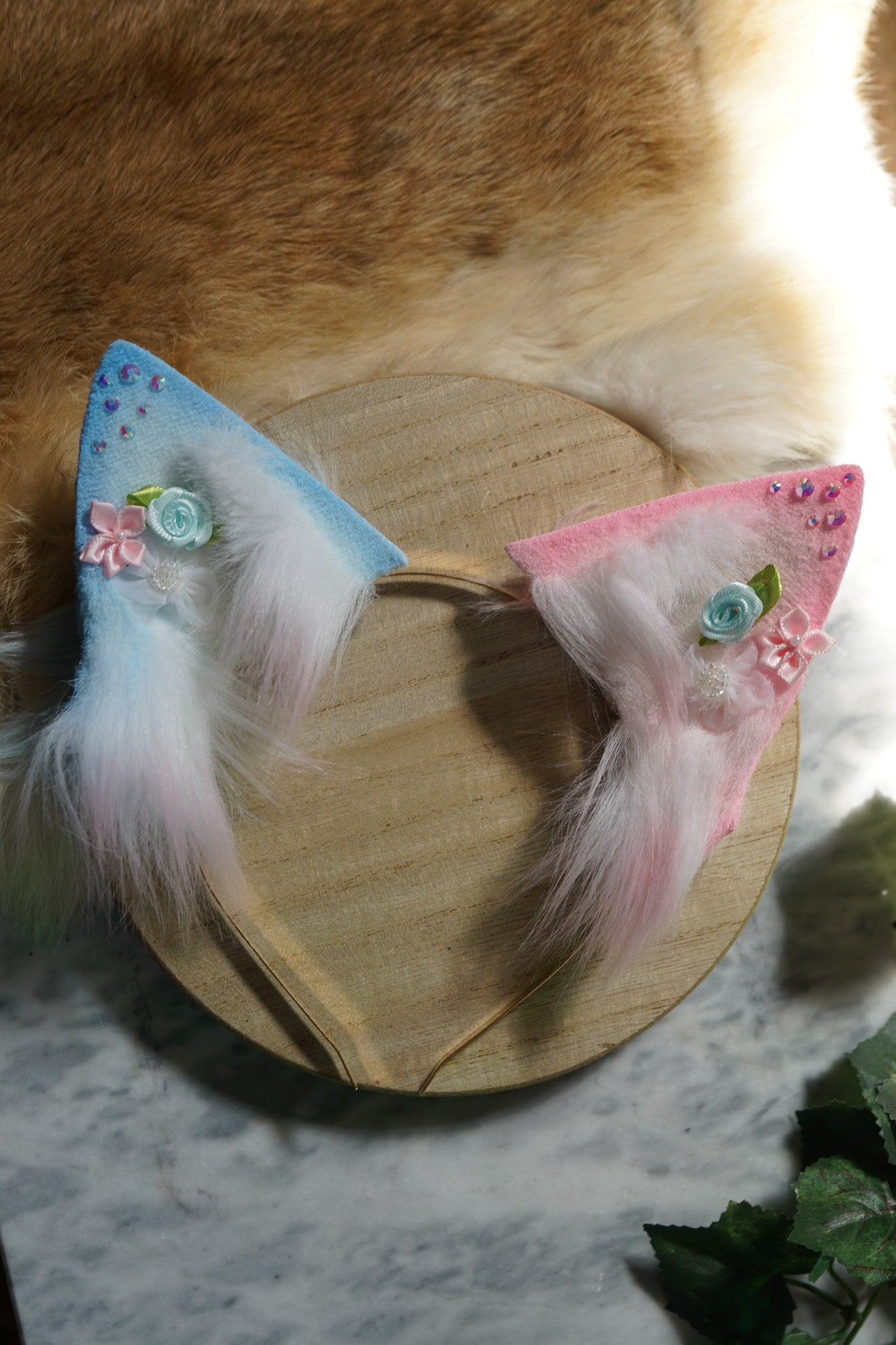 These incredible handmade ears were made by the Little Mantis Menagerie! They feature vibrant colors, beautiful flower details and swarovski crystal accents.