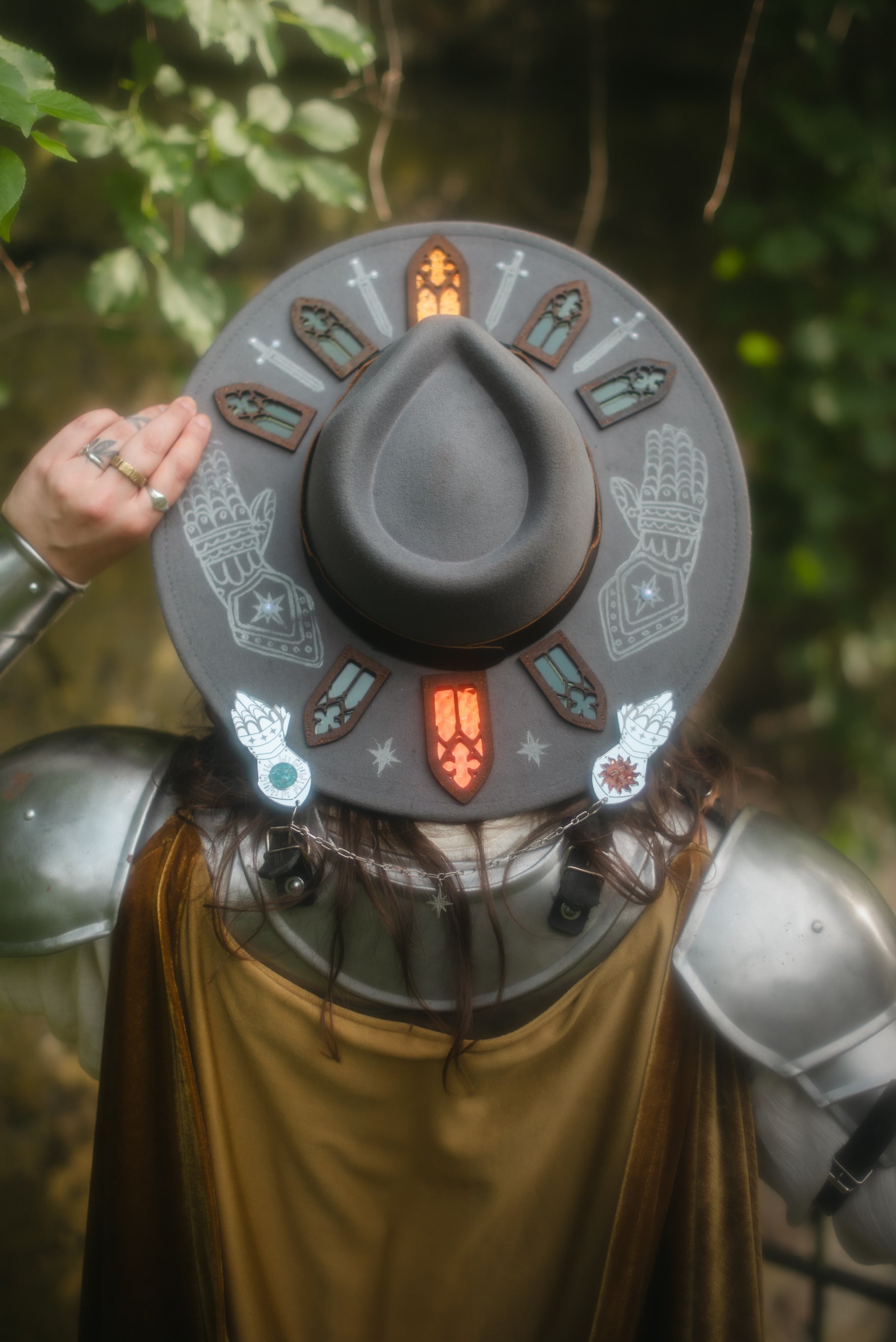 I was thrilled to get my hands on a piece from this collection. The design has so many fantastic details, and the windows are stunning. I did have a little trouble with fit since my head is on the smaller side, but I did eventually work out the right amount to adjust the inner bands. I might still sew in some hair combs for added security since I'm planning to wear this hat to a big ren faire in the fall. It's going to be fun planning a costume around it!