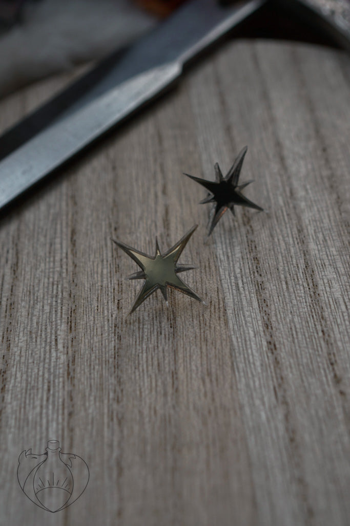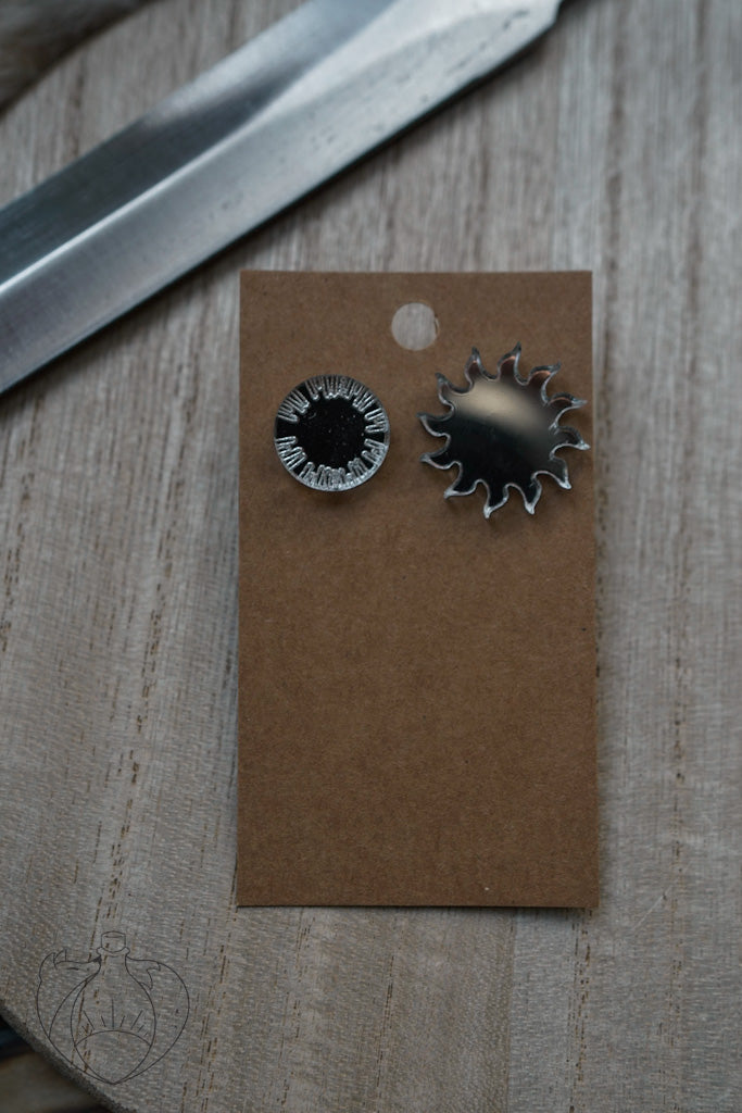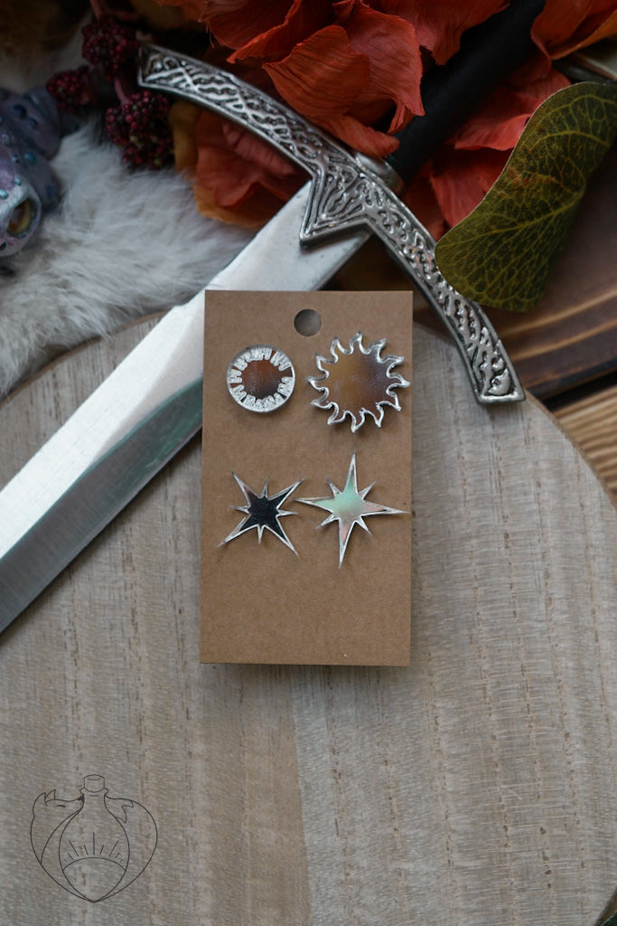 These enchanting little earring studs are made with lovely silver acrylic and are made in the shape of some beloved celestial bodies. These shapes were actually pieces of other product that were cut out! Each stud measures between 0.5 and 0.75 inches
