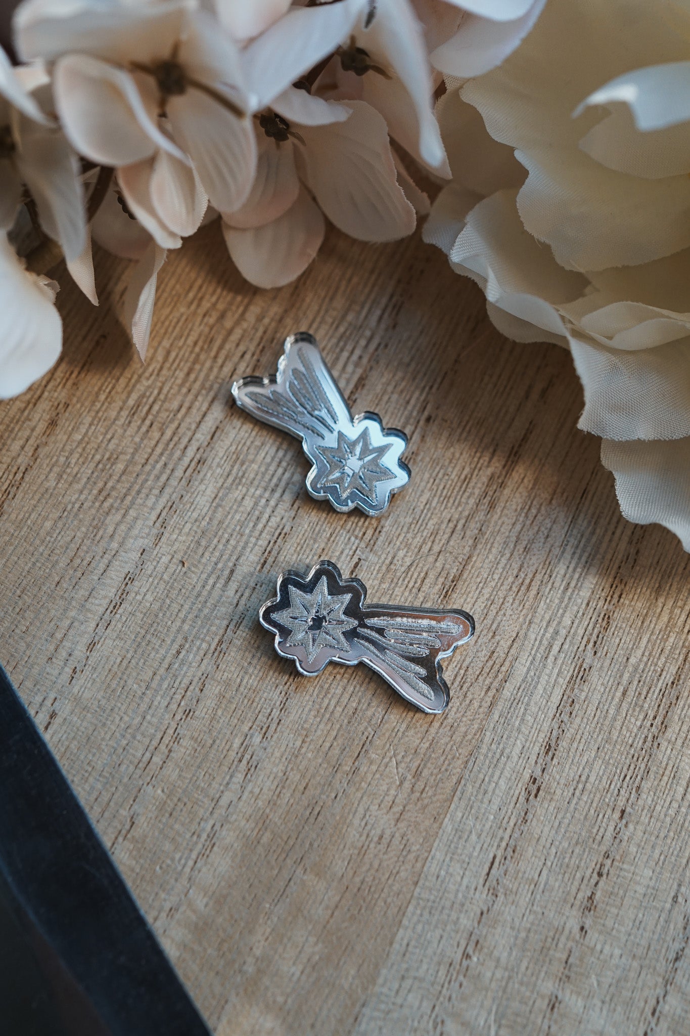 Artifacts made by the Seer - the Dangling Stars measure about 3.5" and the Shooting stars measure about 1.25". All made with hypo-allergenic findings, clip-ons available upon request! Just leave us a note at checkout